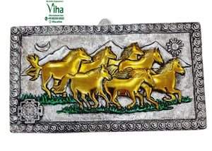 7 Horses with Shree Yantra Wall Hanger - Metal