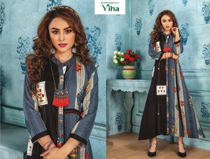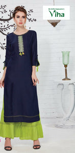 Cotton Rayon Embroidery long Kurti Full Stitched Size:-M (inclusive of all taxes)