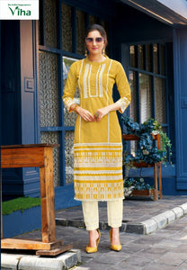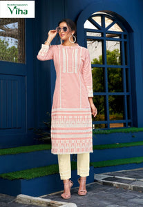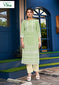 Pure Cotton Kurti Set With Inner Block Print & Lace Work