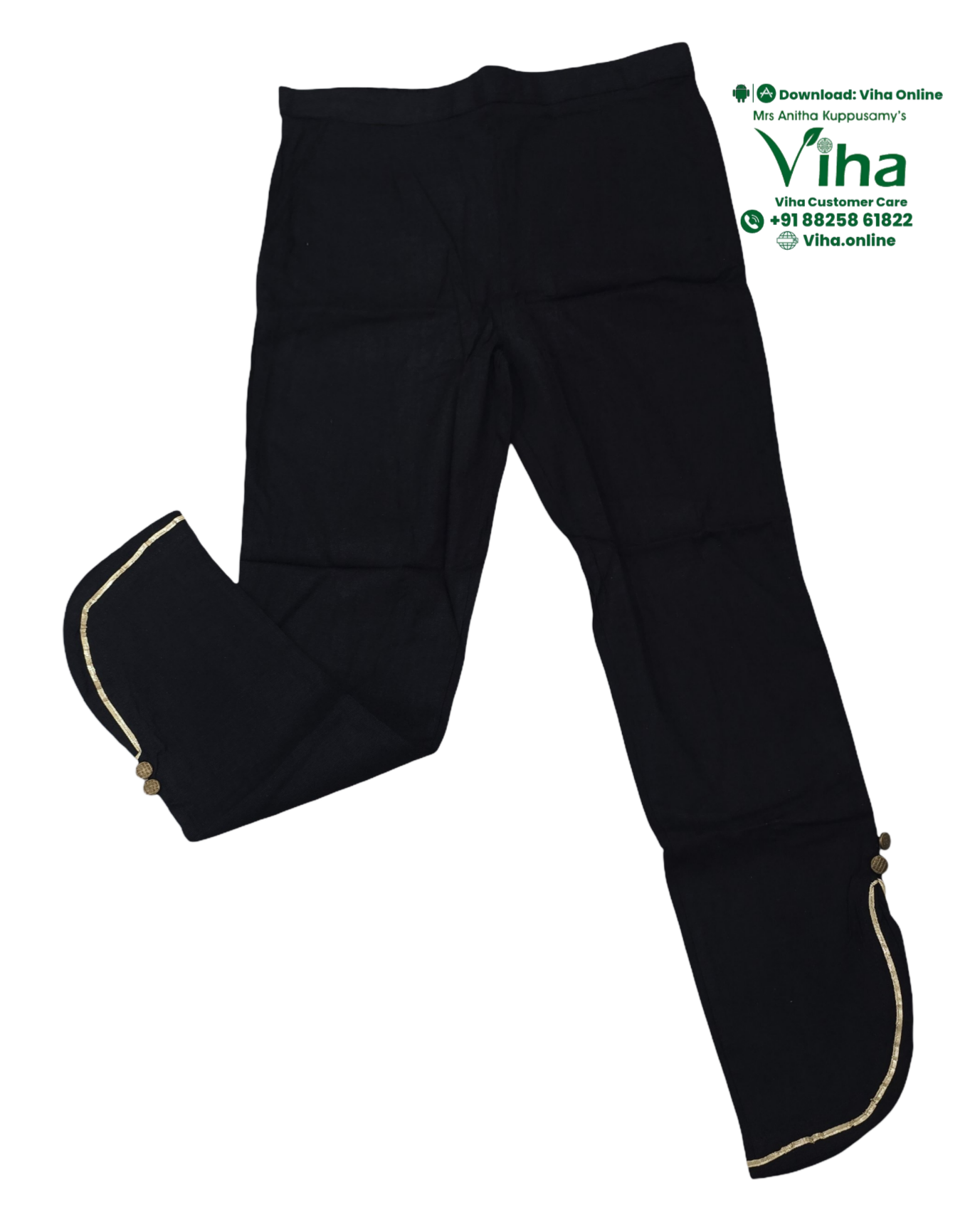 Ladies Trendy Stretchable Pant Black Colour With Golden Lace & Button